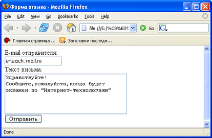 Часто на web-сайте размещают форму для отправки сообщений на e-mail: