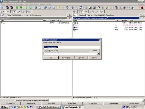 Выполнить следующие действия с объектами в Total Commander (копирование и перемещение объектов выполнить 2 способами):