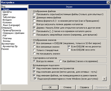 - Для настройки Total Commander используют пункт меню «Конфигурация»-«Настройка». Открывающееся окно предоставляет пользователю большое число настроек, важнейшие из которых: