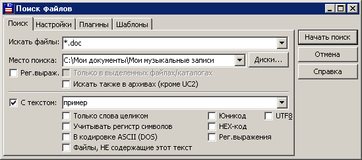 - Расширенный поиск файлов, включая поиск текста в любых файлах, в т.ч. на нескольких дисках.