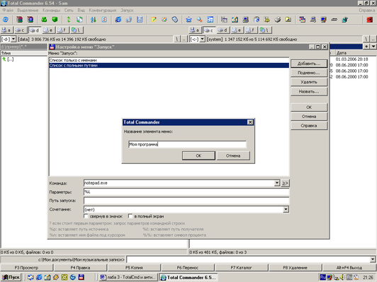- Меню "Запуск" (команды, определяемые пользователем) для размещения в выпадающем меню часто используемых вами DOS- или Windows-программ. Текущий каталог и/или файл под курсором может быть передан приложению.