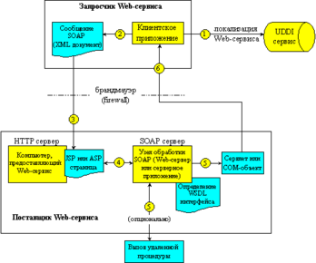 • клієнтське прикладення де-небудь з Internet споживає Web-сервіс;