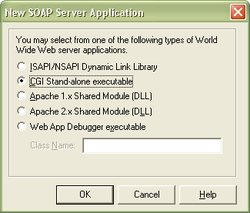 Залишився останній крок - створення проекту прикладення. У RAD оберімо команду меню File | New | Other і із закладки WebServices оберімо значок SOAP Server Application. Буде виведений діалог вибору формату прикладення Web Services (мал. 2).