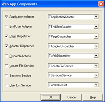 Група Application Module Components (модуль компонентів прикладення) призначена для вибору компонентів, які будуть розташовані в основному модулі прикладення і вид модуля. Модуль компонентів Web-прикладення використовується для централізації керування діловими правилами і не візуальними компонентами.