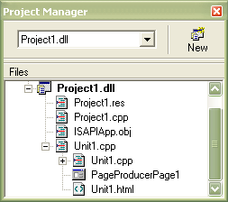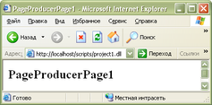 Тепер залишилося зберегти і скомпілювати проект. Одержаний виконуваний файл і шаблон сторінки Unit1.html треба розташувати на Web-сервері у каталозі скриптів (для IIS це каталог c:\Inetpub\Scripts). Запустимо Web-браузер Internet Explorer і в рядку адреси наберемо http://localhost/Scripts/Project1.dll (у разі використання Apache та для інших Web-серверів адреса буде іншою). У вікні браузера ми побачимо напис PageProducerPage1 (мал. 9).