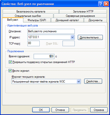 Для налагодження Веб-узла по умолчанию треба в контекстному меню обрати команду Свойства і встановити параметри згідно мал. 2.