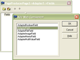 Розглянемо приклад створення сторінки для введення імені користувача. Розташуймо компонент Adapter в модулі PageProducerPage2. Визначимо поле, яке повертатиме ім'я користувача. Для цього з інспектора об'єктів викличемо редактора властивості Data адаптера Adapter1. У редакторі натиснемо кнопку New Item. Нам буде запропонований діалог вибору типу поля (мал. 13).