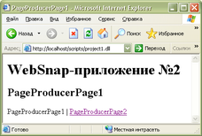 Тепер, побудуємо прикладення і розташуємо його на Web-сервері (для цього необхідно скопіювати файли Unit1.html, Unit2.html, Project1.dll у теку для скриптів на сервері). Запустимо Web-браузер Internet Explorer і у рядку адреси наберемо http://localhost/scripts/project1.dll (у разі використання Apache і для інших Web-серверів адреса буде іншою). У вікні браузера побачимо, що нижче за заголовка з'явилася панель навігації по сторінках прикладення (мал. 3.13).