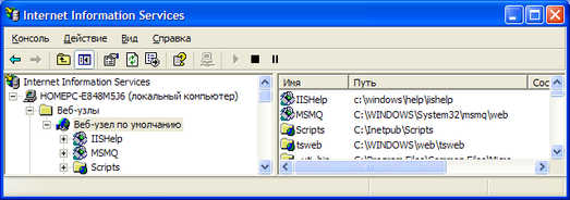 Після успішного встановлення необхідно запустити IIS, для чого виконати команду Пуск | Панель управления, обрати піктограму Администрирование, обрати ярлик Internet Information Services, а в списку, що з'явився, - Веб-узел по-умолчанию (мал.1) і натиснути кнопку запуску.