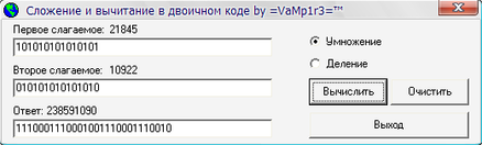 «Умножение и деление целых неотрицательных чисел в двоичном коде»