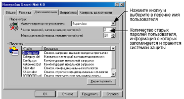 | Только просмотр | Разрешен вызов окна «Настройки Secret Net 4.0», но запрещено вносить любые изменения в поля диалогов этого окна |