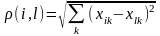 Здесь xik(xlk) – значение k- ого параметра для i – ого (l – ого) компонента.