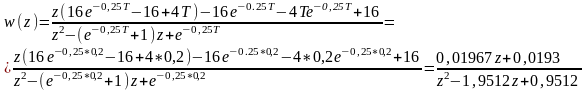 3. Визначимо передатні функції розімкненої та замкненої САК відносно вхідного сигналу для двох значень періоду квантування Тк = 0,2, Тк = 0,8: