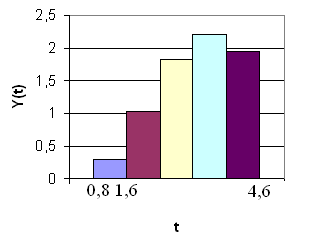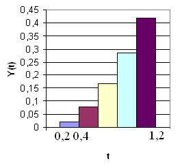Тобто C1 = 0,01967, C2 = 0,077, C3 = 0,1686, C4 = 0,2839, C5 = 0,4176. За цими даними побудуємо графік-гістограму перехідного процесу (рис. 1.2).