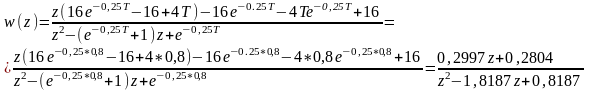 4) Отримаємо передаточну функцію розімкненої САК в z-формі: