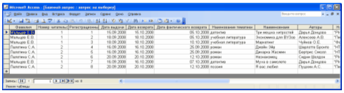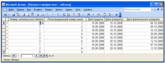 Рис. 2.10 Таблица «Выдача и возврат книг» при выполнении