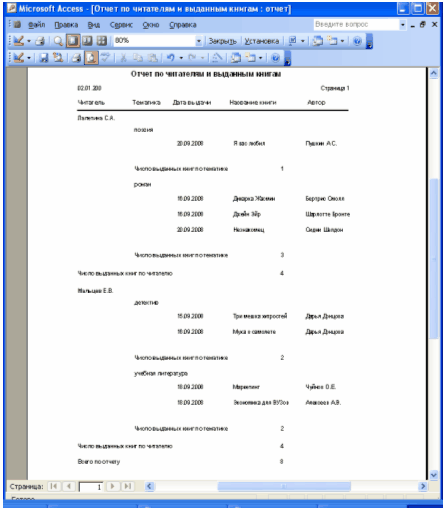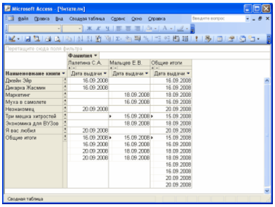 Рис. 4.14 Форма «Сводная таблица по читателям и выданным книгам» при выполнении