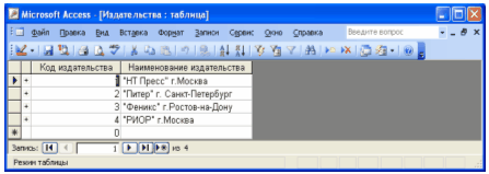 Рис. 2.8 Таблица «Издательства» при выполнении