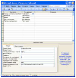 Рис. 2.1 Таблица «Читатели» при проектировании