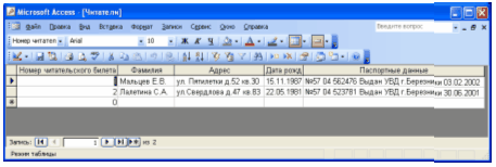 Рис. 2.2 Таблица «Читатели» при выполнении
