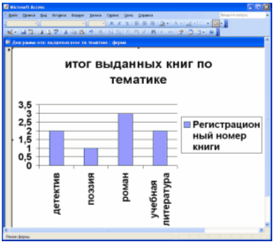 Рис. 4.13 Форма «Диаграмма итог выданных книг по тематике» при выполнении