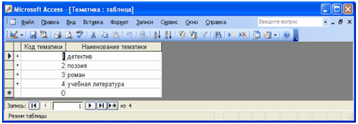 Таблица «Тематика» состоит из: кода тематики и наименования тематики
