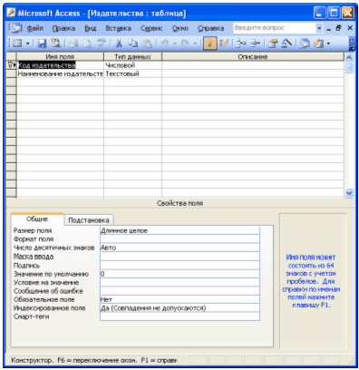 Рис. 2.7 Таблица «Издательства» при проектировании