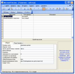 Рис. 2.5 Таблица «Тематика» при проектировании