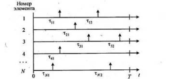 Рис. 1.1. Временная диаграмма моментов отказов невосстанавливаемых элементов