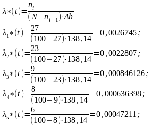 Интенсивность отказа в i-ом интервале: