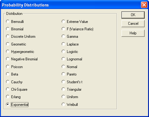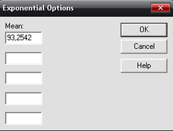 В пункт Analysis Options контекстного меню введем следующие параметры экспоненциального распределения: среднее отклонение = 93,2542