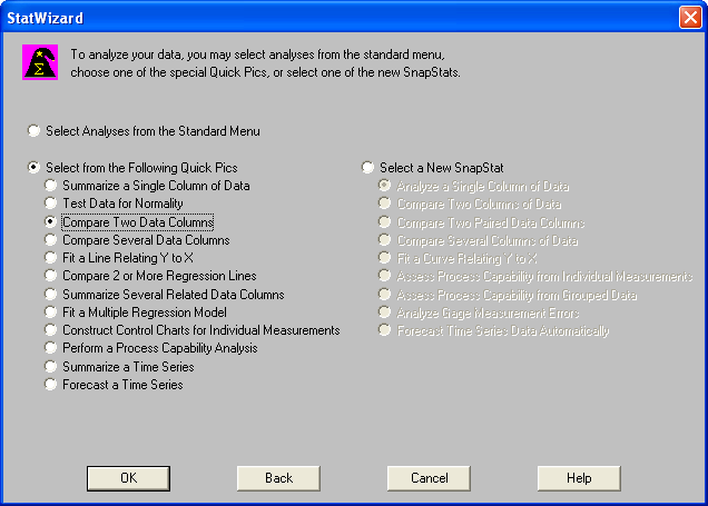 Нажатием кнопки StatWizard