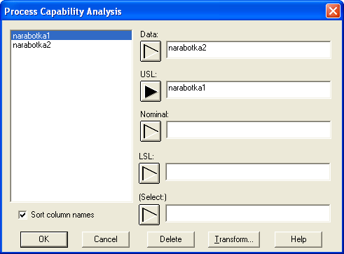 Нажатием кнопки Capability Analysis