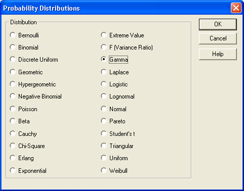 Для переменной narabotka1 подберем Гамма-распределение. Выберем пункт Gamma.