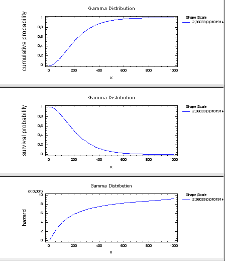 В пункте меню Describe\Distributions\Probability Distributions построим графики требуемых показателей надежности в соответствии с рассчитанными ранее параметрами.