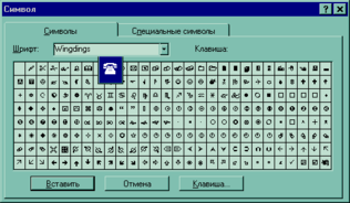 В списке Шрифт: (Font) выберите необходимый шрифт, затем с помощью мыши выберите нужный символ и щелкните два раза левой кнопкой мыши. Символ появится в документе там, где стоит курсор, словно вы только что набрали его на клавиатуре.