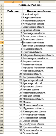 Используя данный список регионов, перепишем их в столбец А и В. Получим: