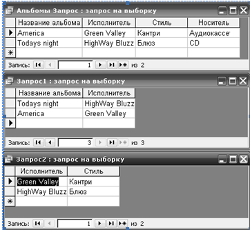 перемещаем с панели Альбомы запрос все элементы: Название альбома, Исполнитель, Стили и Носители;