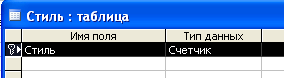 аналогично создадим таблицу Стили с полем: Стиль. Поле Стиль сделаем ключевым, нажав на кнопку