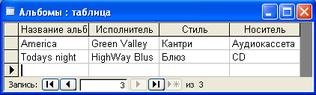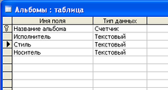 Задание №2. Создайте Таблицу Альбомы с полями: Название альбома, Исполнитель, Стиль, Носитель. Поле Название альбома – ключевое поле,