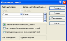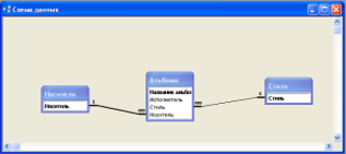 выбираем в таблице Носитель поле Носитель (установив курсор мыши на это поле, нажимаем левую кнопку мыши и, не отпуская ее, перетаскиваем на одноименное поле таблицы Альбомы);