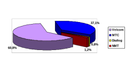 В данном разделе рассмотрены основные показатели операторов мобильной связи, работающих на территории Республики Беларусь. Будут рассмотрены компания Velcom и основные её конкуренты COOO «Мобильные ТелеСистемы» (далее МТС) и ООО СП «БелСел» (далее Diallog и NMT). Все цифровые данные даны на октябрь 2003г.