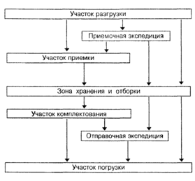 Рис. 1.2. Принципиальная схема материального потока на складе предприятия оптовой торговли