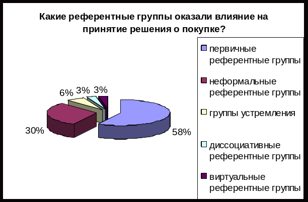 1 человек находится под влиянием виртуальной референтной группы (подруга по чату посоветовала).