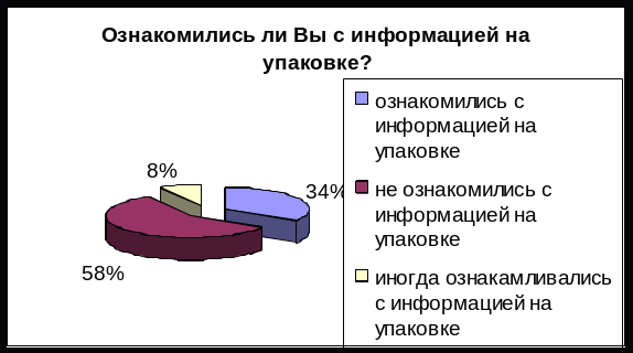 С информацией на упаковке обычно ознакамливаются 34%, берут порошок сразу 58%, 8% респондентов иногда интересуются инструкцией и составом.