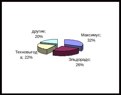 Покупки совершались в основном в наиболее крупных, современных и известных компаниях, а именно: Максимус (32%), Эльдорадо (26%), Техновыгода (22%).
