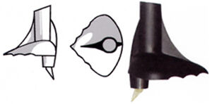 Естественно, изменился темляк. Популярность и симпатии отданы системе "капкан". Его начали применять даже в классических палках. Он прочно удерживается на запястье, позволяет лучше контролировать движение палки. Их формы разнятся довольно сильно, но одно незыблемо - широкий ремешок, охватывающий всю кисть руки Рис.7. Изменения динамики движения привело к изменению опоры. Теперь это сегменты типа "гусиная лапка", имеющие вид сильно усечённого полукольца, прочно прикреплённые к стержню в строго заданном направлении Рис.3. Аэродинамический овальный дизайн и высокое по отношению к лапке расположение центра тяжести обеспечивают максимально быстрый и лёгкий вынос лыжной палки вперёд. Наконечник опоры делают стальным или твёрдосплавным, победитовым с обратным конусом.