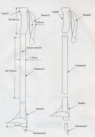 Лыжная палка ЕО рассматривается как техническая объект, состоящее из 5 функциональных элементов показанных на Рис. 1,2,3. Ручка –Е1; Темляк-Е2; Стержень- Е3; Лапка -Е4; Наконечник –E5, декомпозиции подробно показана на потоко-функциональной схеме структуры а)конкретизированной, б) астрагированой лыжной палки.