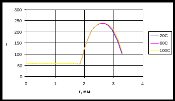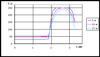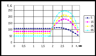 Рис. 19. Распределение температуры по радиусу для различных температур второй ванны