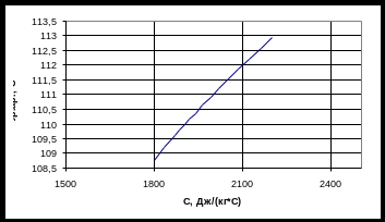 Рис. 14. Зависимость средней арифметической температуры от удельной теплоемкости